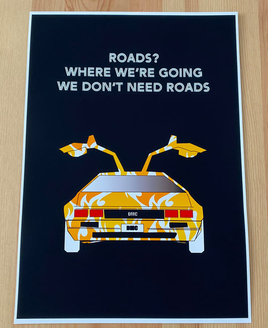 Delorean-Back To The future Print -Where we're going we don't need roads