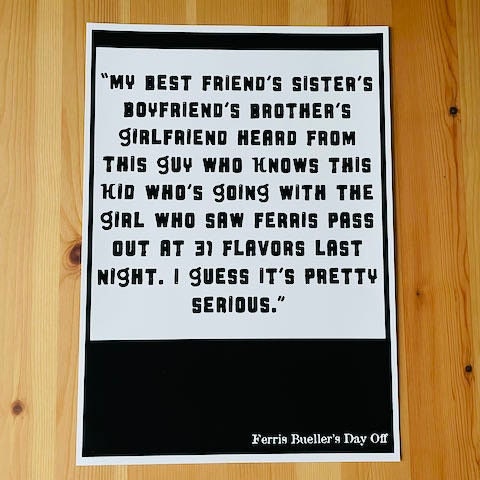 Ferris Buellers Day Off Print-Ferris Bueller quote inspired print