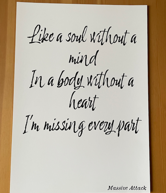 Unfinished Sympathy Print -Massive Attack Inspired Lyric Print