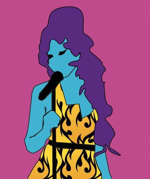 Amy Winehouse Print-Flower hair-Grey ,white and black