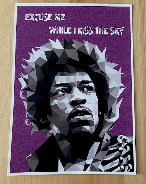 Jimi Hendrix Print-Excuse me while I kiss the sky-Low Poly Art