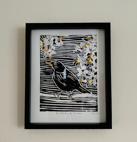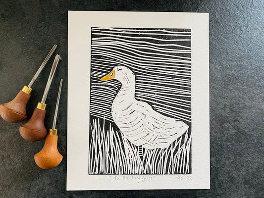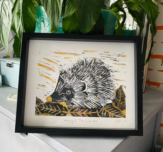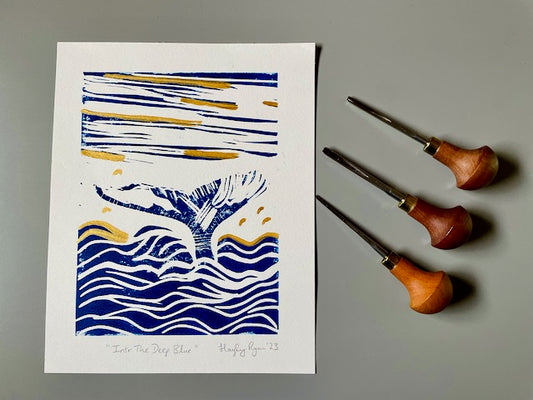 Framed Whale Linoprint-"Into The Deep Blue"-Mini Print