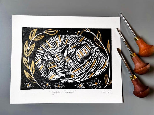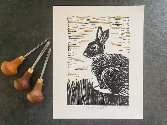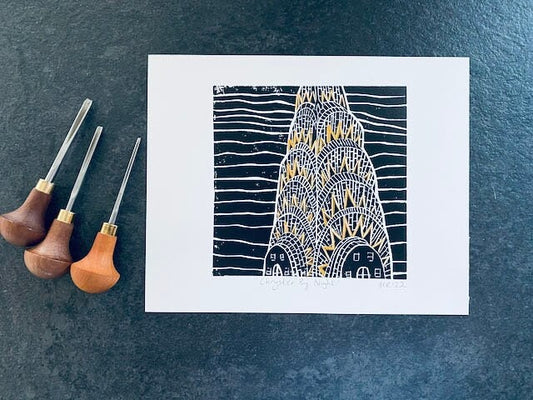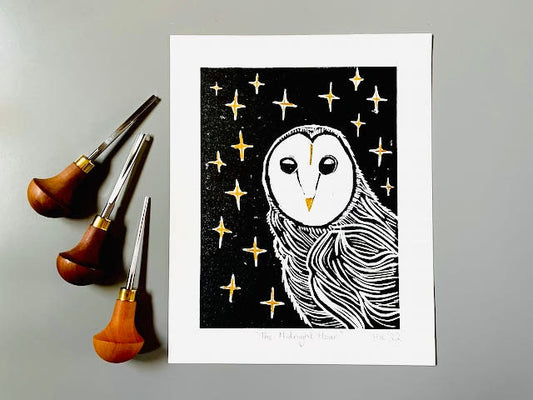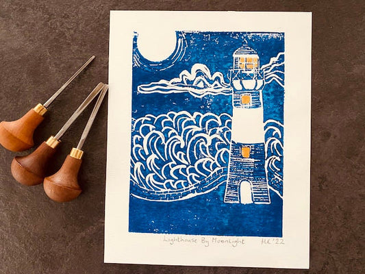 Lighthouse Linoprint -"Lighthouse By Moonlight"