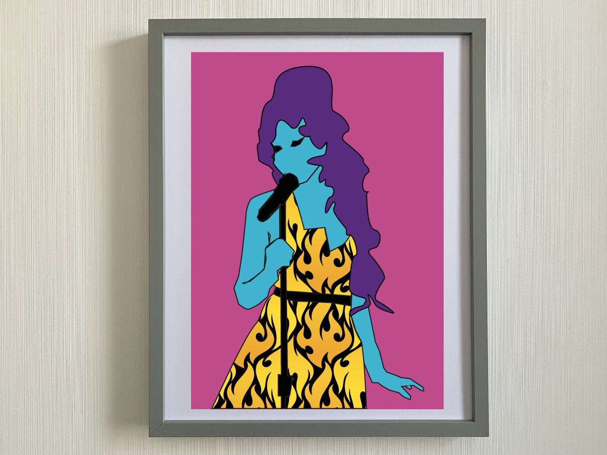 Amy Winehouse Print -A tribute to the hugely talented and unique Amy Winehouse.This print is high quality and printed on 100% recycled paper ,will make an ideal gift for an Amy Winehouse fan and will brighten up any room.Please note this print is unframed.