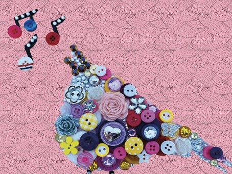 Bird Print-Print from handmade singing bird button art.