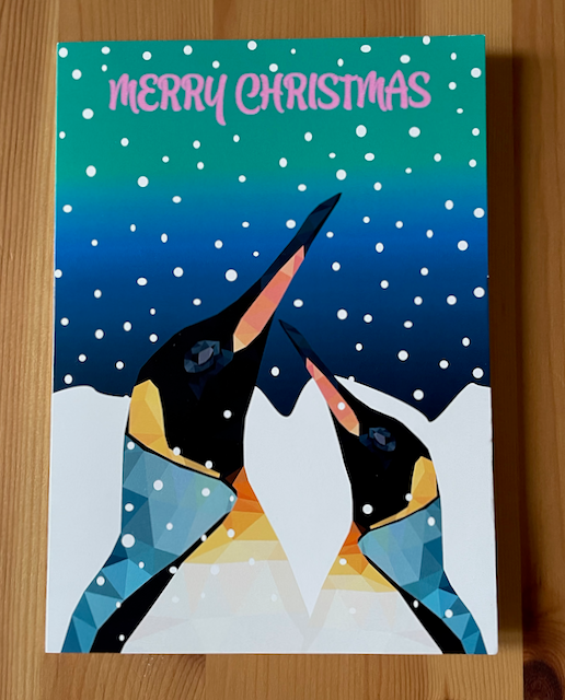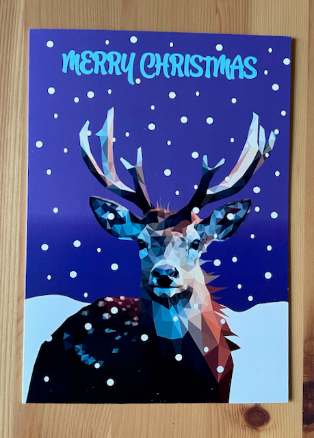 These colourful animals in the snow illustrations are created in a low poly art style which gives a modern twist to a traditional Christmas card.