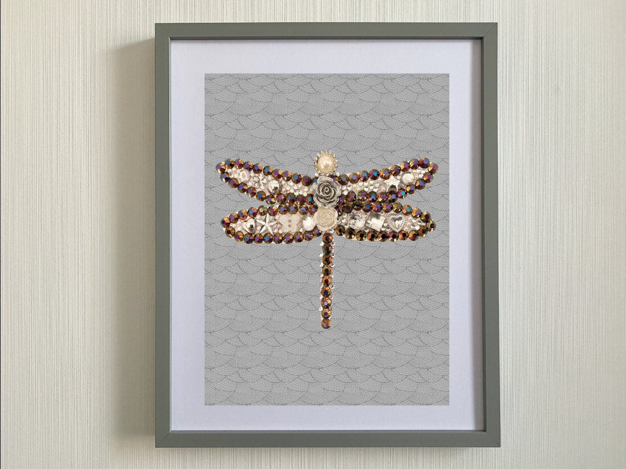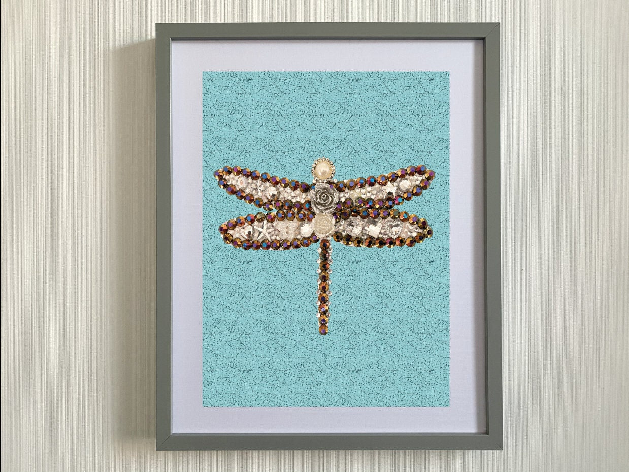 This unique print is taken from an original handmade picture of a dragonfly which I created from a selection of beautiful beads and then turned into a print.