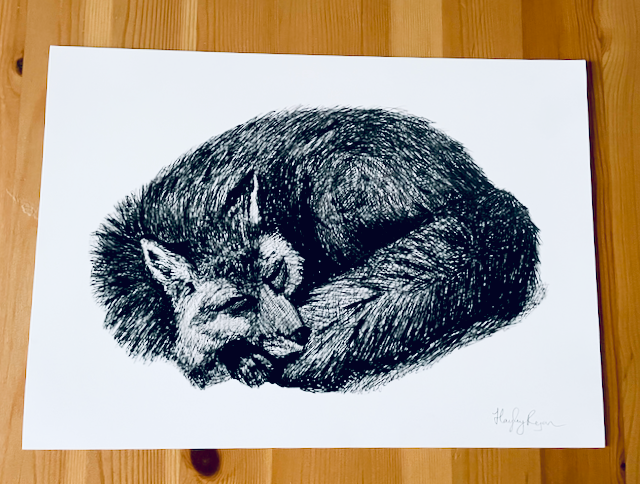A beautiful black and white print of a sleeping fox taken from my original ballpoint pen drawing.
