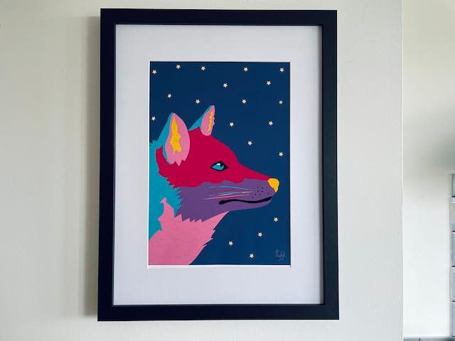A colourful and unusual fox against the starry night sky which will brighten up walls in any room of the house and also makes an ideal gift for any fox and animal lover.