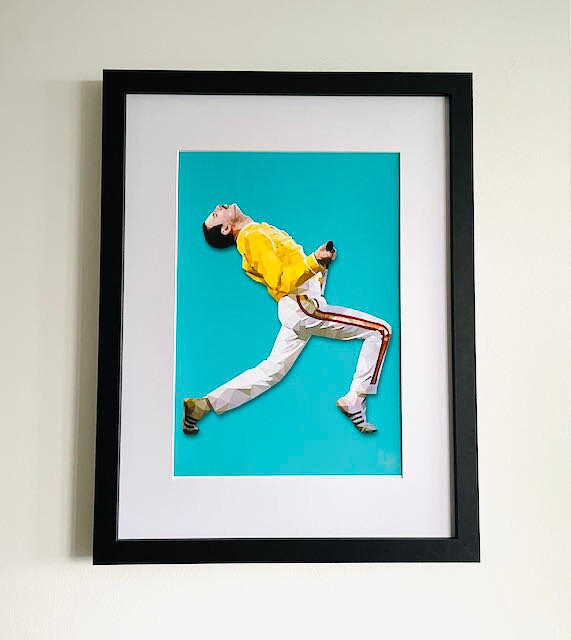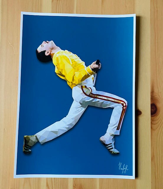 In honour of the hugely talented and irreplaceable Freddie Mercury ,I have created this print in a low poly art style to give a realistic and unusual effect .