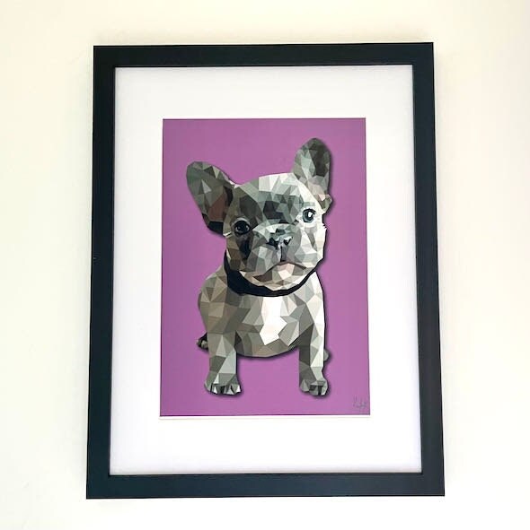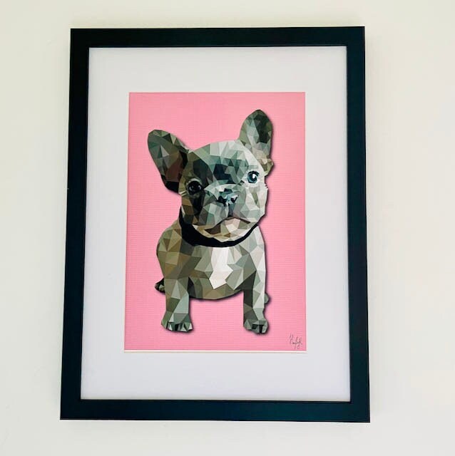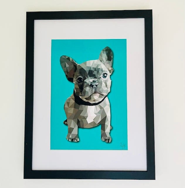 In honour of the cuteness that is the Frenchie ,I have created this print over many hours in a low poly art style to give a realistic and unusual effect .