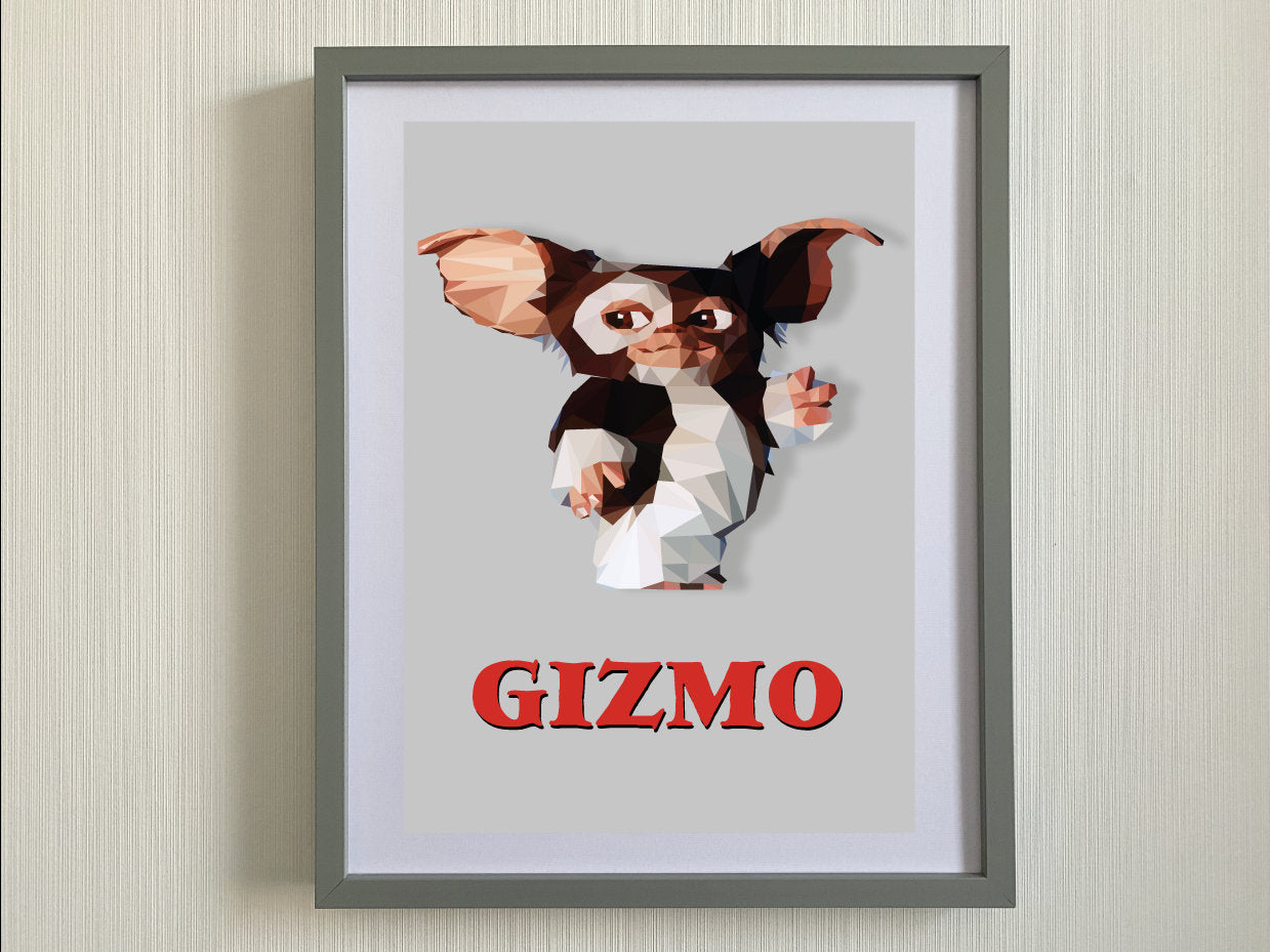 Gizmo Print -I spent many hours creating this image of the much loved Gizmo from the classic film Gremlins using a low poly art technique which gives him a 3D effect giving him a life like quality.A great gift for any Gremlins fan.