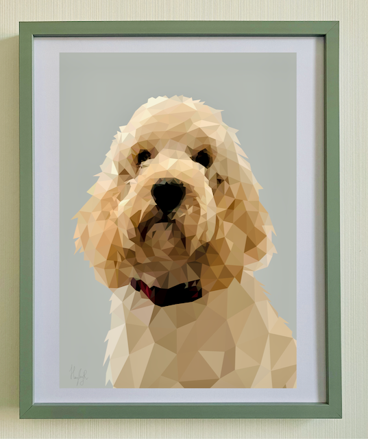 Bespoke Low Poly Art Pet Portrait of 1 pet in A3 size (unframed)is £165 ( including postage and packing )
