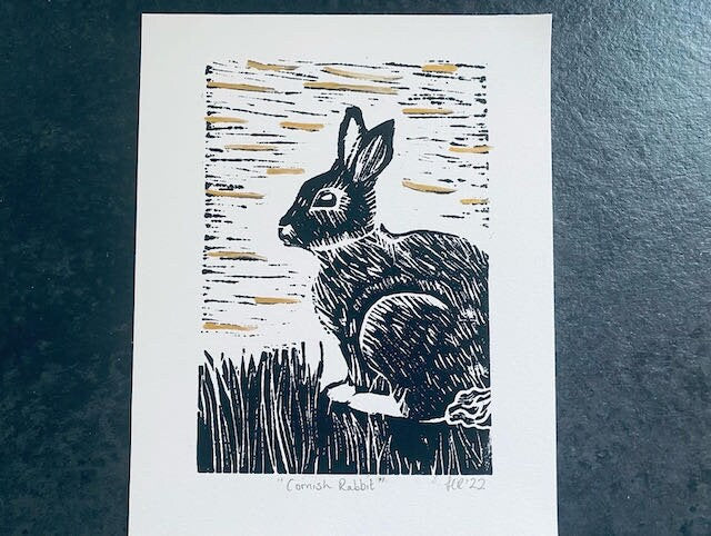 I have carefully created this original hand printed Linocut print of a rabbit taken from my original sketch of a rabbit I saw hopping around in Cornwall last summer using high quality inks on premium acid free paper to ensure a long lasting and beautiful print.