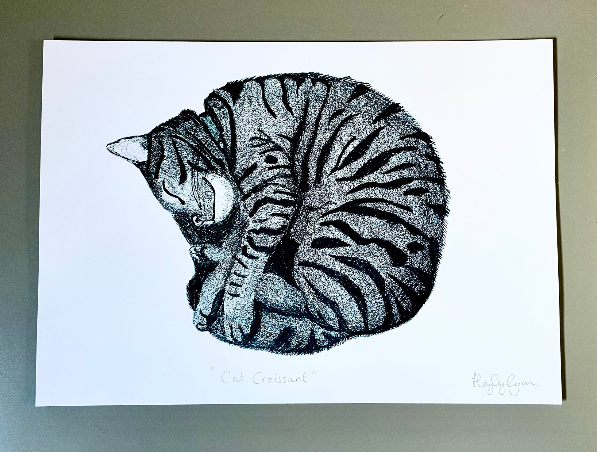 Sleeping Cat -“Cat Croissant “ Pencil Drawing Print