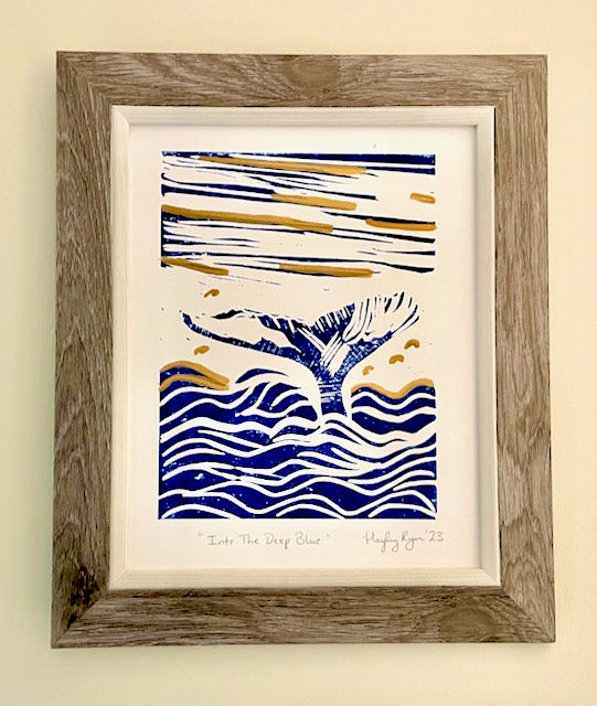 I have carefully created this original hand printed Linocut print of a whale tail as he dives down into the deep blue using high quality inks on premium acid free paper to ensure a long lasting and beautiful print.